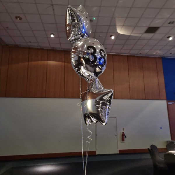 Cost per set of three foil balloons with middle silver number balloon = £20.00